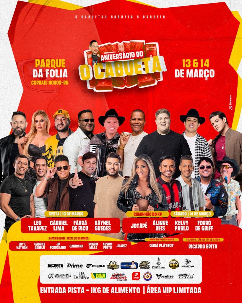 A cidade de Currais Novos já está em contagem regressiva para um dos eventos mais aguardados do mês de março. Nos dias 13 e 14, o Parque da Folia será palco do Aniversário do Cabueta, prometendo dois dias de muita música, animação e grandes atrações.