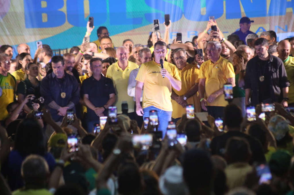 Já Flávio Bolsonaro fez um duro discurso com foco no combate à criminalidade no país. O senador afirmou que trabalha para aumentar a punição de criminosos. Além disso, defendeu a redução de impostos, lembrando que o governo Lula aumentou ou criou mais de 30 taxas em 3 anos.