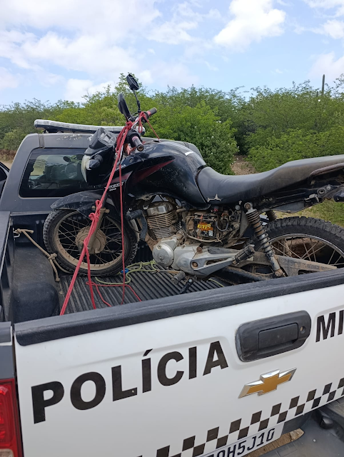 De acordo com informações da guarnição, por volta das 10h, os policiais realizavam patrulhamento rural no Sítio Mulungu quando avistaram uma motocicleta Honda CG 150, de cor preta, estacionada às margens de uma estrada carroçável.