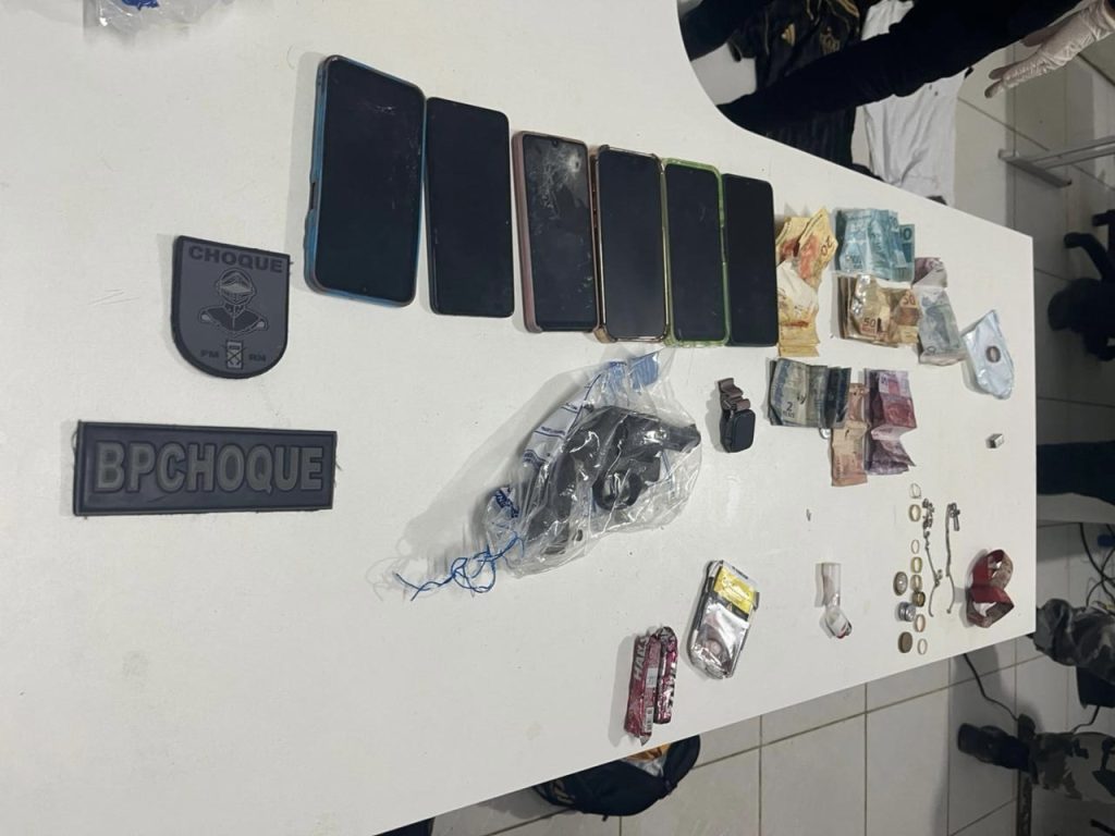 Com o indivíduo, a polícia apreendeu um revólver calibre .38, seis celulares roubados, cinco cápsulas de munição (entre deflagradas e intactas), dinheiro em espécie e diversos bens subtraídos, incluindo joias e chaves de veículos.