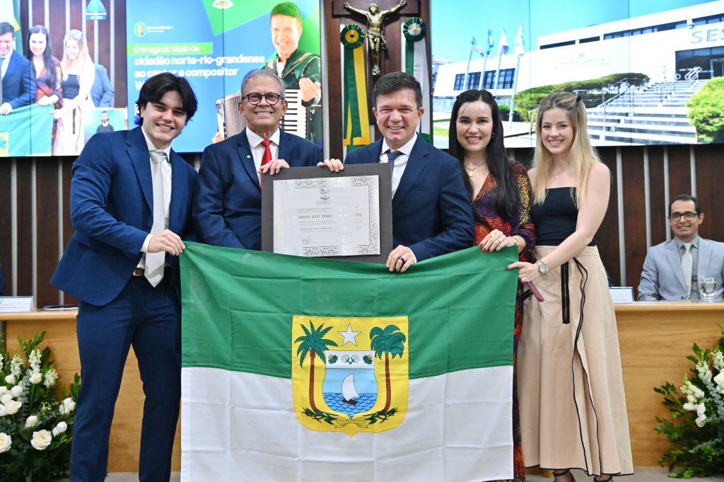 Através de proposição do mandato do deputado Hermano Morais (PV), com subscrição da parlamentar Divaneide Basílio (PT), a Assembleia Legislativa promoveu, na tarde desta terça-feira (30), sessão solene para tornar cidadão norte-rio-grandense o cantor Waldonys José Torres de Menezes. Diversas instituições, por meio de seus representantes, prestigiaram a cerimônia, a exemplo do Governo do Estado, da Prefeitura de Natal, da 7ª Brigada de Infantaria Motorizada, da Base Aérea de Natal e da Câmara Municipal de Natal.