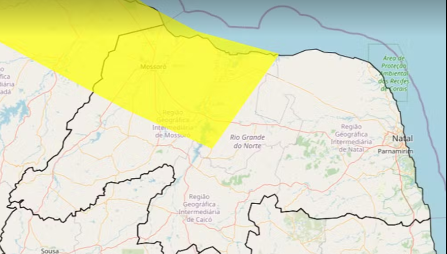 O Instituto Nacional de Meteorologia (Inmet) emitiu um aviso de chuvas para 28 municípios das regiões Oeste e Central do Rio Grande do Norte. O alerta é válido desde a manhã desta terça-feira (20) até as 23h59 da quarta-feira (21).