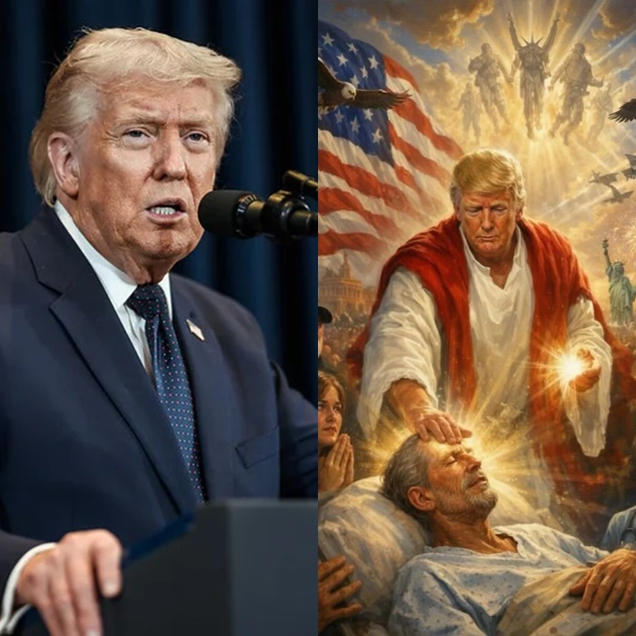 Alguns minutos depois da publicação, Trump publicou nas redes sociais uma imagem gerada por inteligência artificial em que retrata ele com uma túnica branca abençoando um homem doente. A imagem ainda mostra a bandeira dos Estados Unidos, a Estátua da Liberdade, caças de guerra, uma aeronave espacial e gaviões.