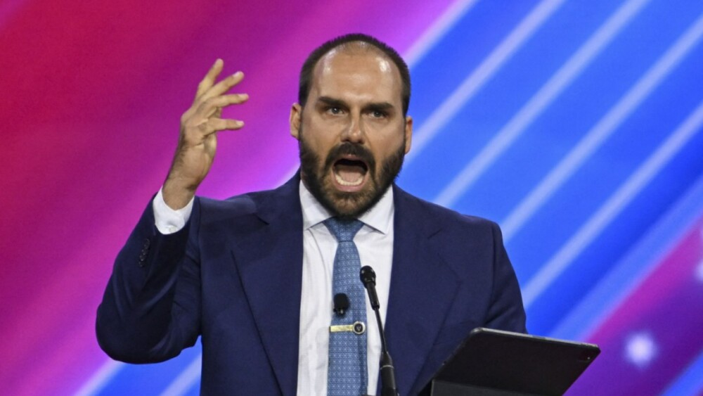 Eduardo Bolsonaro é defensor das sanções impostas pelo governo Donald Trump, incluindo o tarifaço, a cassação de vistos de autoridades e a imposição de medidas contra o ministro Alexandre de Moraes e a esposa do magistrado, com base na Lei Magnitsky.