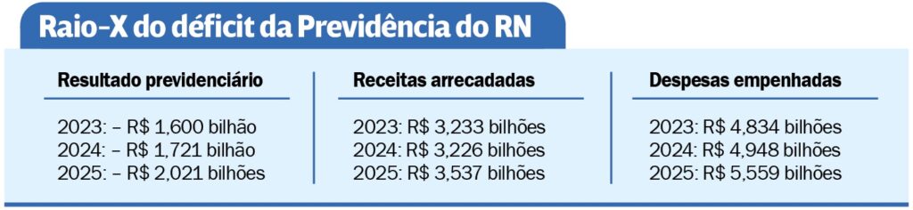 O déficit da Previdência dos servidores civis do Rio Grande do Norte ultrapassou a marca de R$ 2 bilhões em 2025. Esse valor foi a diferença entre o total arrecadado e a despesa com o pagamento de benefícios no período. Os números estão no relatório de prestação de contas do Governo do Estado, apresentado à Assembleia Legislativa na semana passada.