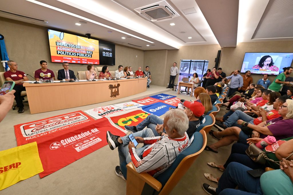 Por outro lado, os parlamentares propositores do debate na Assembleia Legislativa, assim como entidades representativas dos servidores, manifestaram preocupação com os possíveis impactos da reforma sobre os direitos dos trabalhadores e o funcionamento dos serviços essenciais. Uma das principais críticas recai sobre a proposta de desvinculação dos recursos obrigatórios para áreas como saúde e educação, o que poderia reduzir investimentos e comprometer o atendimento à população. Em um cenário em que a dívida pública já atinge 497% da Receita Corrente Líquida, movimentos sindicais alertam que a reforma, da forma que está, ameaça a estrutura do Estado e o acesso da população a direitos fundamentais.