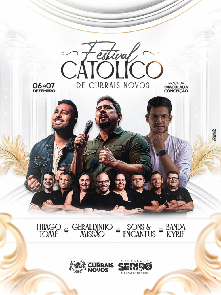 A cidade de Currais Novos se prepara para dois dias de muita fé, devoção e música com a realização do Festival Católico de Currais Novos, que acontece neste sábado (06) e domingo (07) de dezembro, na tradicional Praça da Imaculada Conceição. O evento promete reunir fiéis de toda a região, oferecendo uma programação especial que combina espiritualidade, cultura e grandes nomes da música católica.