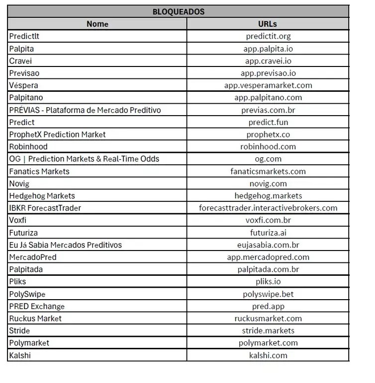Confira a lista de plataformas de mercado preditivo bloqueadas