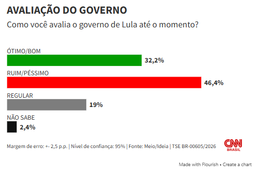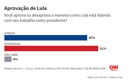 Meio/Ideia: Lula é desaprovado por 51%; aprovação vai a 45%