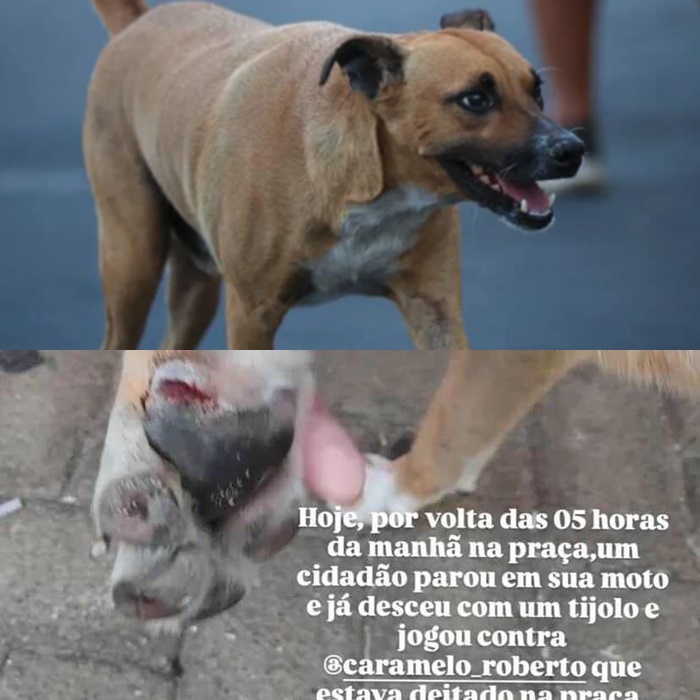 De acordo com relatos publicados nas redes sociais, por volta das 5h da manhã um homem teria parado sua motocicleta na praça e, de forma violenta, arremessado um tijolo contra o animal, que dormia no local. O objeto atingiu a pata do cachorro, causando ferimentos, mas não a cabeça — o que poderia ter sido fatal.