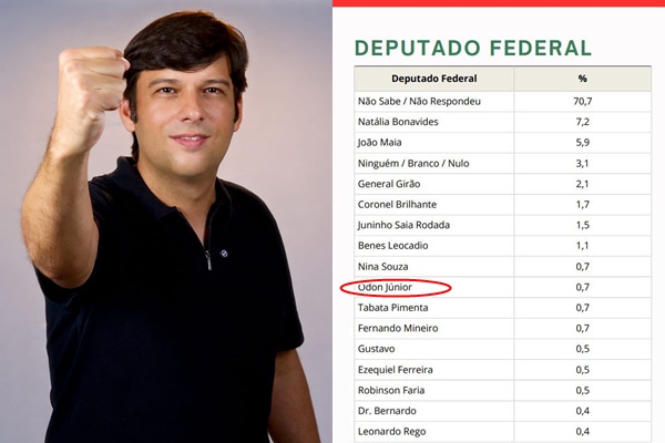 ODON JR APARECE EM 8° LUGAR PARA FEDERAL E EM 2° NA FEDERAÇÃO DO PT