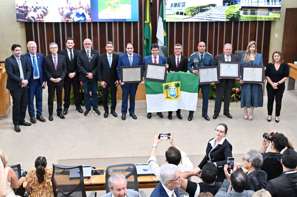 A Assembleia Legislativa do RN realizou, na tarde desta quinta-feira (2), sessão solene de entrega de títulos honoríficos de cidadão norte-rio-grandense a cinco personalidades que prestam relevantes serviços para o estado. Participaram da cerimônia o deputado propositor – Francisco do PT – seus colegas Ubaldo Fernandes (PSDB), Eudiane Macedo (PV) e Adjuto Dias (MDB), o procurador-geral da Casa, Dr. Renato Guerra, e ainda representantes do Governo do Estado, do Tribunal de Contas do RN e da Ordem dos Advogados do Brasil/Seccional RN.