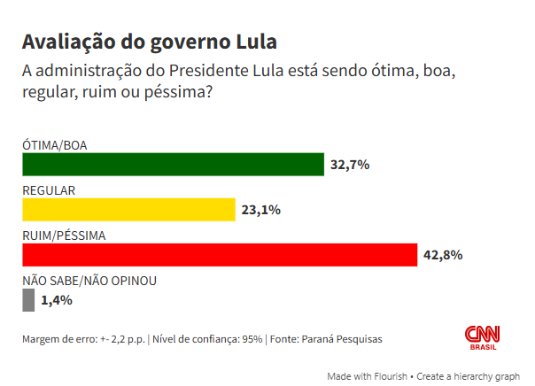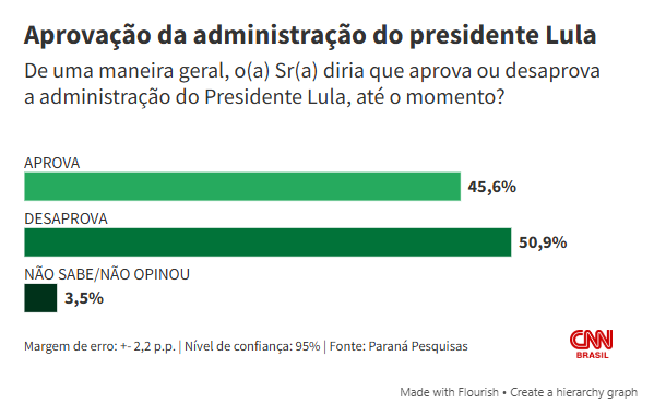 Paraná Pesquisas: governo Lula é desaprovado por 50,9%; 45,6%, aprovam