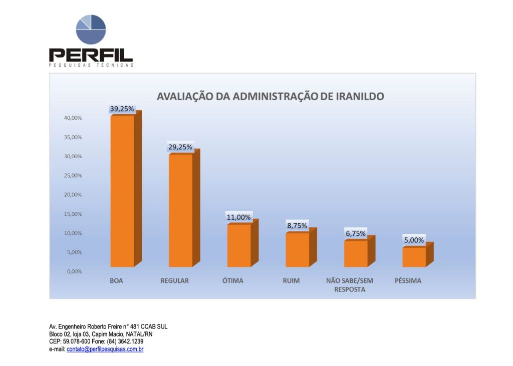 A pesquisa teve como objetivo medir a percepção da população sobre a condução administrativa do município ao longo do período recente da gestão. O instituto responsável não divulgou recortes por