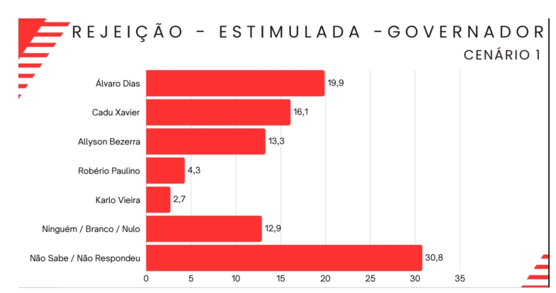 A Pesquisa analisou ainda o índice de rejeição dos pré-candidatos. O ex-prefeito de Natal, Álvaro Dias, aparece com o maior índice de rejeição entre os nomes testados para o Governo do RN. No levantamento, 19,9% dos entrevistados disseram que não votariam nele.