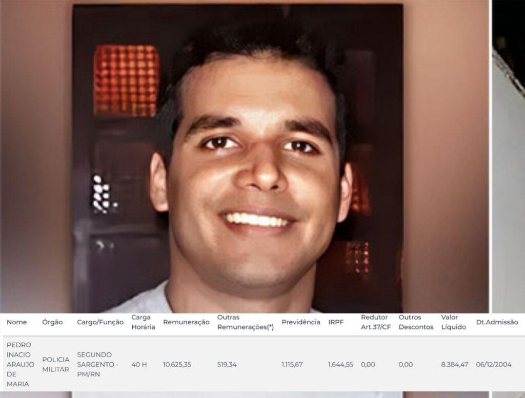 De acordo com informações disponíveis no Portal da Transparência do Governo do Estado, o policial foi inclusive promovido em 2023 ao posto de 2º Sargento. Atualmente, ele recebe um salário mensal de R$ 10.625,35, correspondente a uma carga de 40 horas semanais.