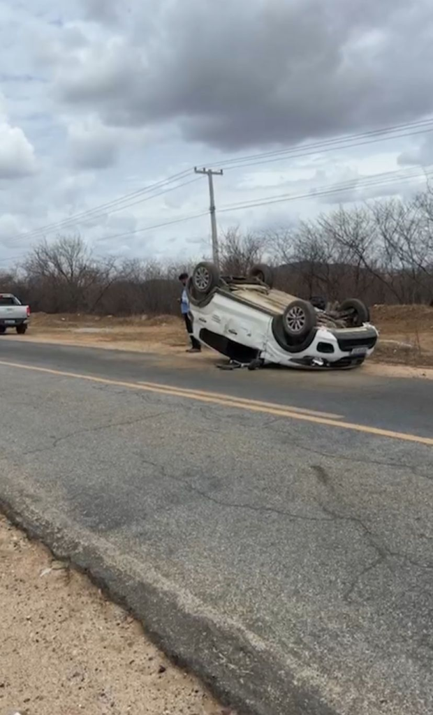 Tentativa de desviar de animal provoca capotamento na entrada da cidade de Parelhas